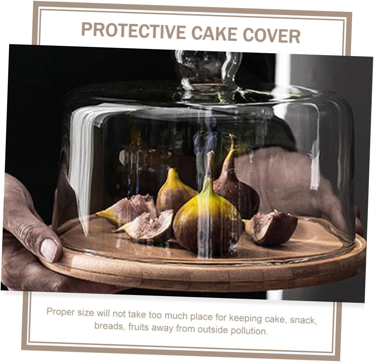 Package Include 1 x glass cake cover 1 x round base Characteristics -Product Info:Cake cover - Material: Wood and glass. - Size: About 24.00X24.00X12.00cm/9.43X9.43X4.72in. - Color: As shown. - Very easy to , not easy to stain, long-term use, shiny as fresh cake plate cover. - This food cover is great for weddings, receptions, buffets, holiday meals, parties, etc Food Glass Cover. - Proper size will not take too much place for keeping cake, snack, breads, fruits from outside . - Fine craft make it not easy to deform and safe for food storage cupcake glass cover. - This small handle glass dome will decorate your delicious food Confectionery Dessert Cover.Goods Descriptioncake dome lid Practical, used as good seal lid to protect cake and other small food from polluted, you can recognize the food inside without open it for each time.Food Cover The item is a glass cake cover for keeping food fresh.Dessert Glass Cover for can be used for bread, cupcake, or fruits storage cover