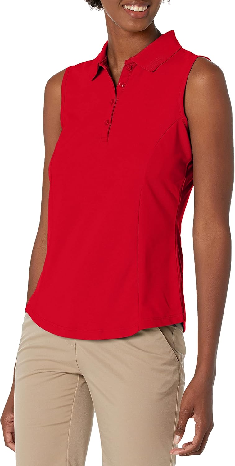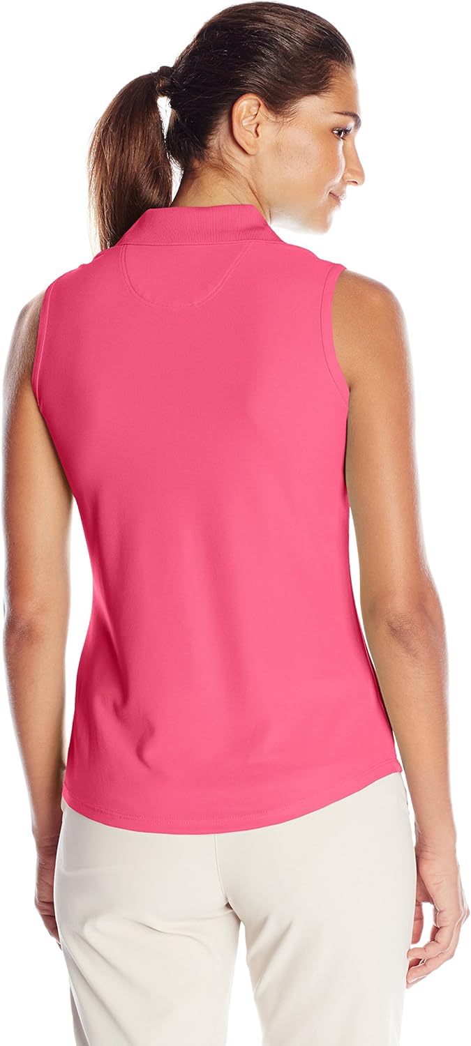 SLEEVELESS ProTek Micro pique polo with fine pique texture, a knit collar, moisture wicking technology, a shirt tail hem, and UPF 50 protection.